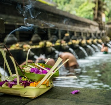 Lokasi di Bali dengan suasana tenang, penuh energi penyembuhan.