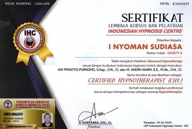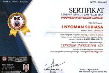 Currently, I also serve as Secretary of DPD PKHI (Indonesian Hypnotist Community Association) Bali Province, a platform that shares the benefits of hypnosis with the wider community.