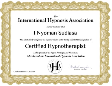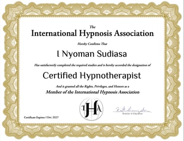 Hi my name is I Nyoman Sudiasa, a Certified Hypnotherapist and Certified Hypnosis Trainer. Call me Sudi